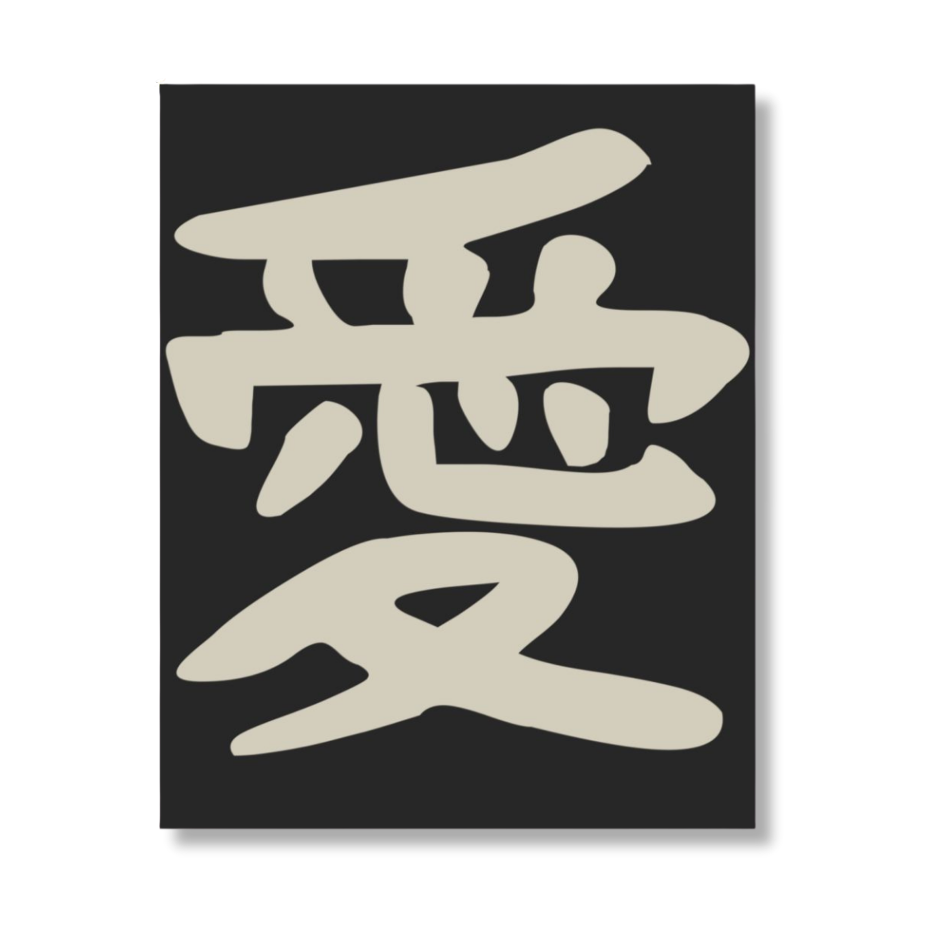 Laat liefde, rust en eenvoud samenkomen in je interieur met deze poster. Het beige Japanse teken op een zwarte ondergrond vormen het woord Love/Liefde. Een symbool voor warmte, verbinding en harmonie.